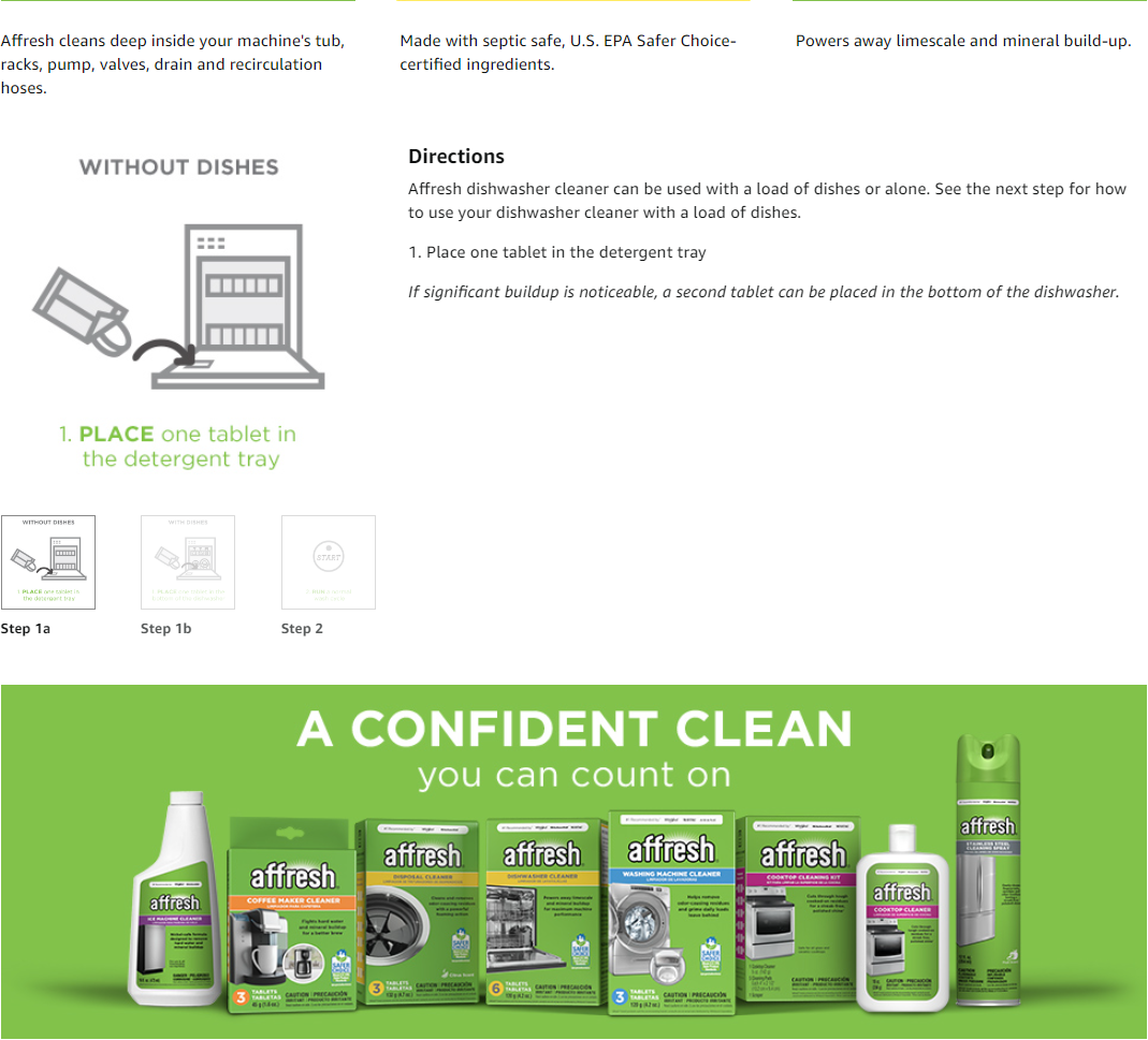- Product 2: No.1 Recommended by Whirlpool, KitchenAid, Maytag and Amana brands (affresh brand products and the recommending brands' products are all owned and distributed by Whirlpool Corporation)