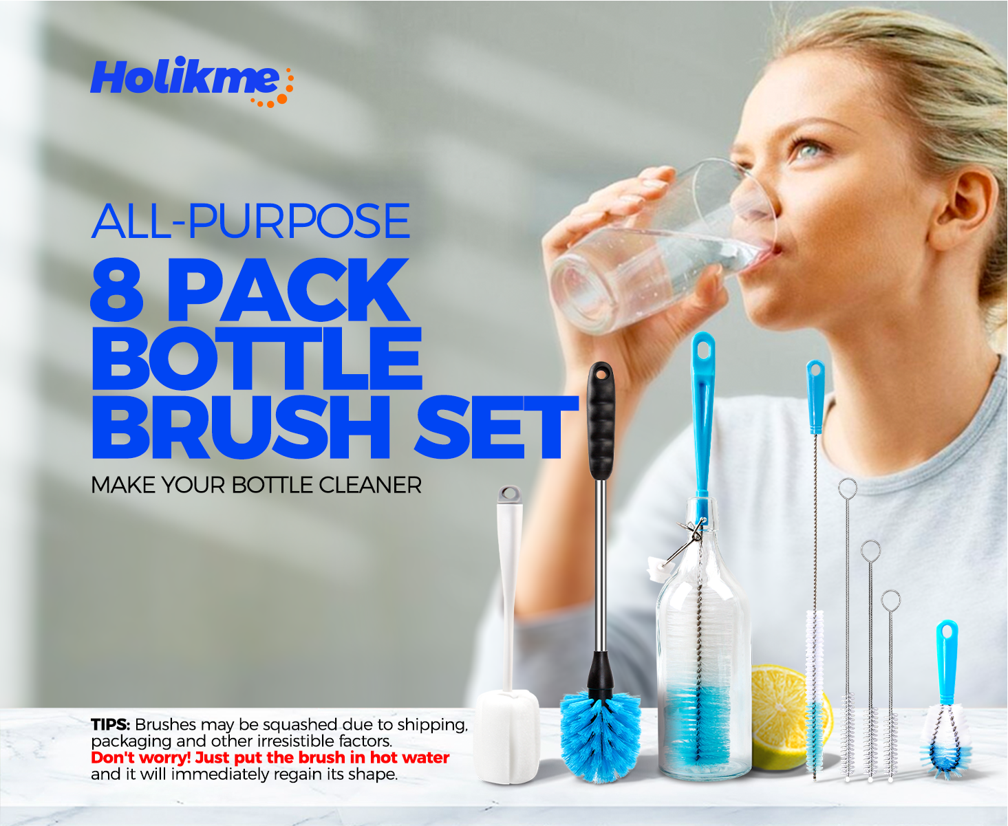 - 🔶8 Pack Bottle Cleaning Brushes, multiple uses, including 15" long handle beer bottle brush, 14" sports water bottle brush, 10" multifunction sponge brush, 4.3" spout cleaning brush, 7.9-12.5" straw brushes. You can hang them on hook for drying and storage.