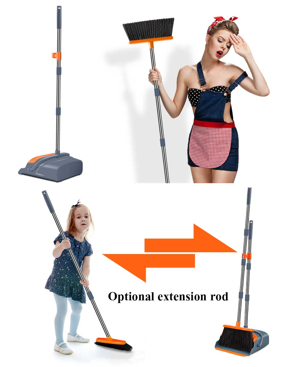 - [Extendable Pole Design] -The optional extension pole makes the broom length from 39.76 to 51.18 inches, People can choose the appropriate length according to their height. And long handle allow you to Stand upright for comfortable sweeping.NO MORE BENDING!
