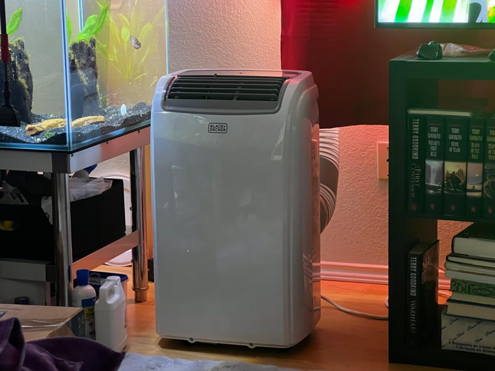 Features: Cools a room approximately 22 x 25 and heats a room approximately 10 x 20. Vertical motion creates constant. powerful airflow and consistent temperature in the room A 24 hour on/off timer and sleep mode ensures arriving to a comfortably cool home Enjoy the simplicity and precision of programmable. electronic controls and the clarity of an LED digital display Bucket less designed unit combines cooling. fan and dehumification modes with quiet operation and remote control Slide-out filter rinses easily under a faucet. leaving the air fresh as well as cool. Window kit included for easy installation The maximum length of the exhaust hose is 4 feet and 11 inches Description:Enjoy a comfortable home climate year-round with this versatile BLACK+DECKER unit. It cools. dehumidifies. circulates air in the summer. and provides heat during those cold winter months. Offering immediate. uninterrupted comfort. this Portable Air Conditioner features easy-to-use electronic controls and is quiet while you sleep. This unit comes with rolling casters and side carrying handles for easy-to maneuver mobile comfort and everything needed for an effortless installation.