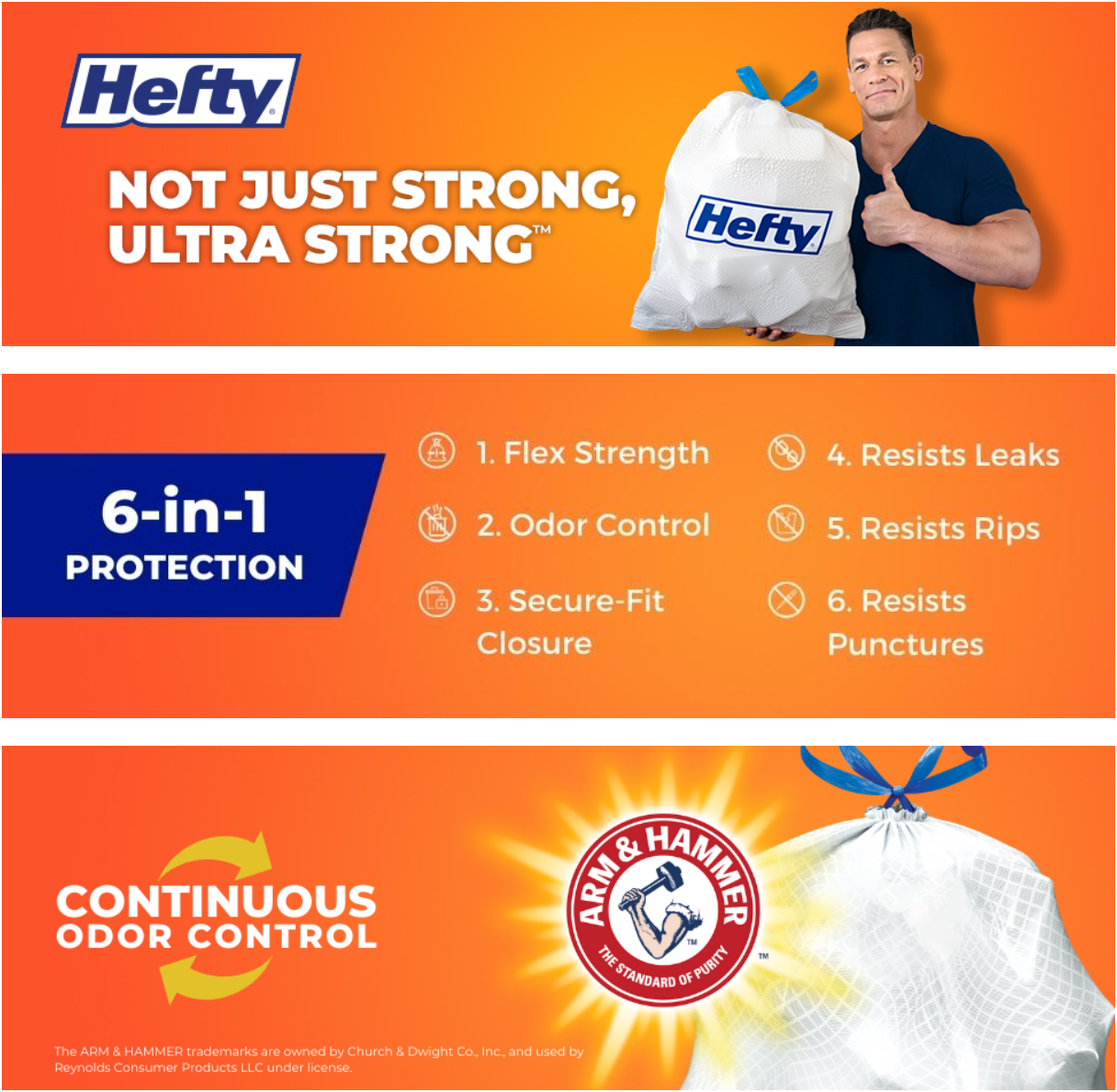 - TOUGHNESS YOU CAN TRUST: Hefty’s strongest tall kitchen trash bags deliver toughness you can trust with a secure, break-resistant drawstring and superior durability