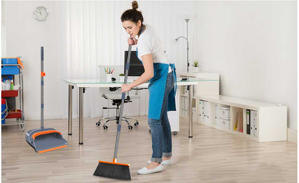 - [Easy Stand-up Storage] - The clip-on feature makes the broom and dustpan upright a perfect space safer! Compact storage keep your home or work space clean and tidy. Works perfectly for multi-surface, Suitable for indoor use.