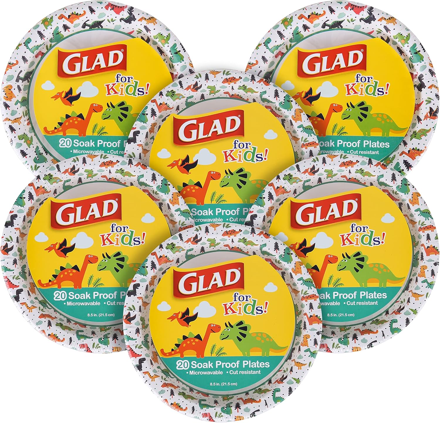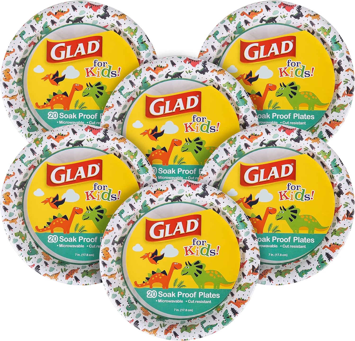 Glad for Kids Dinosaur Design Disposable Paper Plates, 7-Inch, Soak Proof & Microwavable Kid Paper Plates - Perfect for Kids Birthday Parties, Dinosaur Party Supplies - 20 Count Party Plates