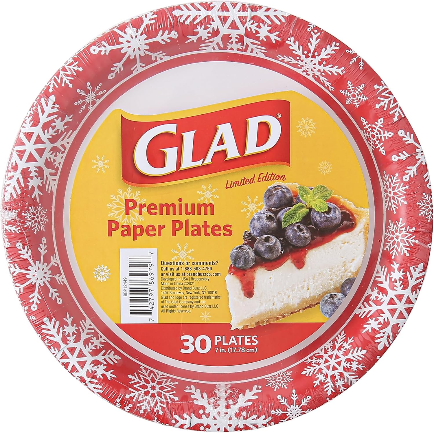 Glad Disposable Holiday Paper Plates, 10 Inch, 20 Count - Red Snowflake Design, Heavy Duty and Microwavable