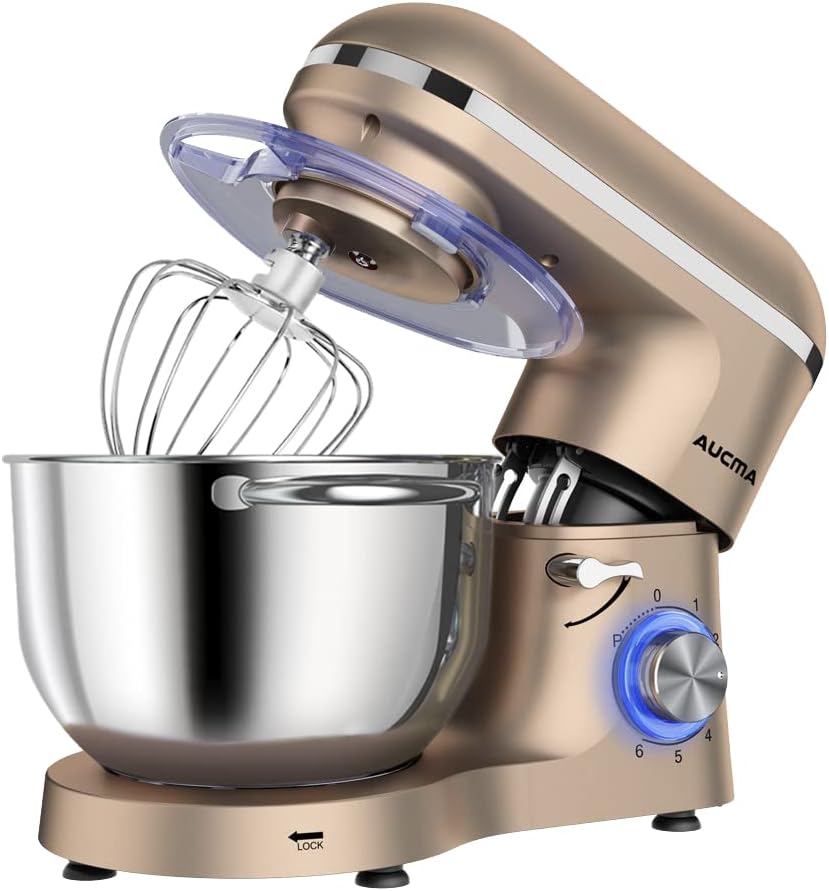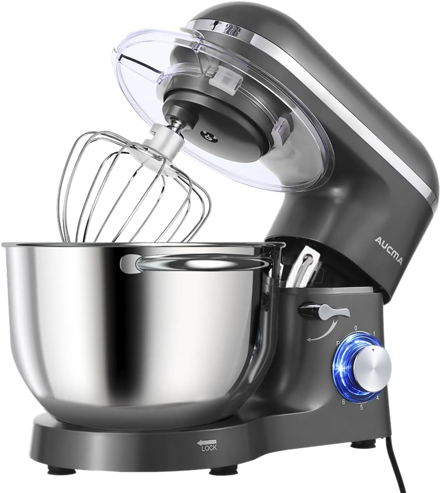 Aucma Stand Mixer,6.5-QT 660W 6-Speed Tilt-Head Food Mixer, Kitchen Electric Mixer with Dough Hook, Wire Whip & Beater (6.5QT, Black)