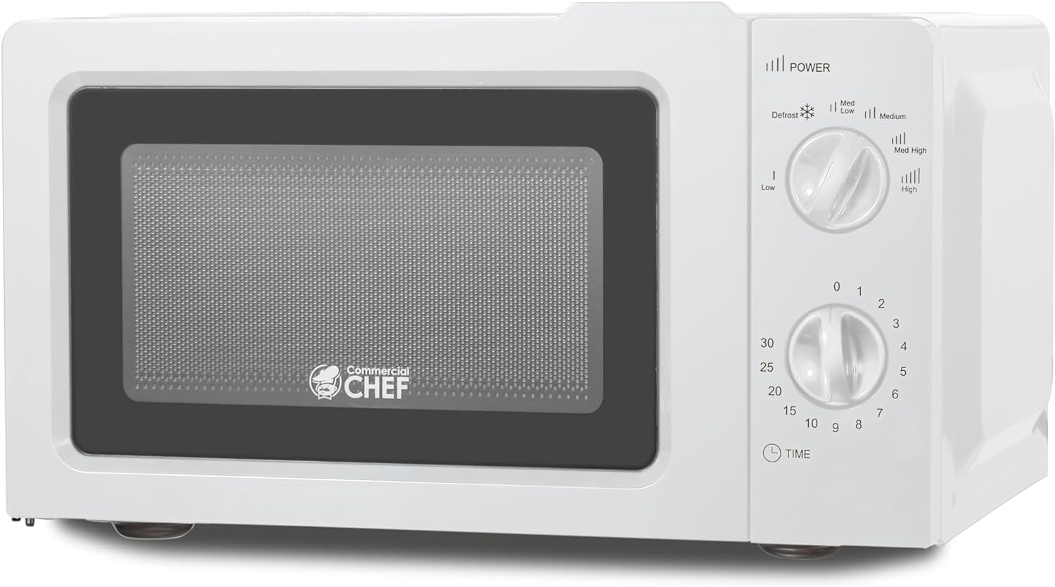 COMMERCIAL CHEF 0.6 Cubic Foot Microwave with 6 Power Levels, Small Microwave with Grip Handle, 700W Countertop Microwave with 30 Minute Timer and Mechanical Dial Controls, White