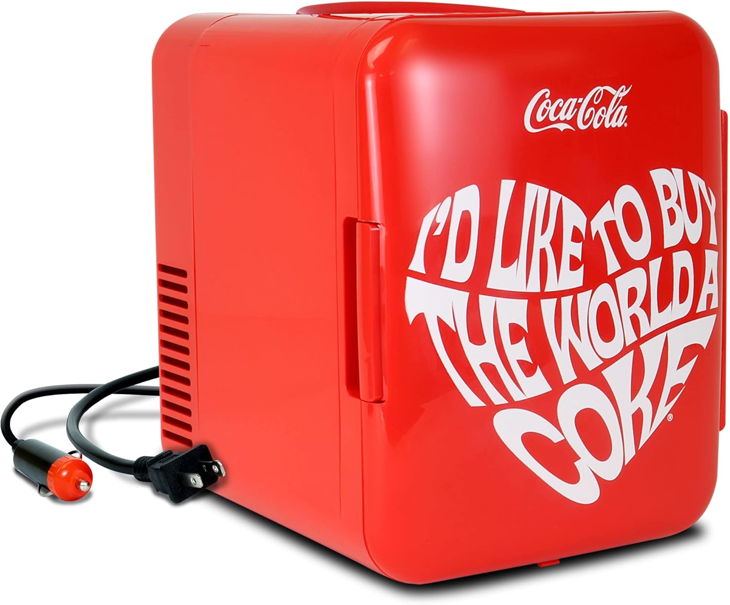 Coca-Cola Classic Coke Bottle 4L Mini Fridge w/ 12V DC and 110V AC Cords, 6 Can Portable Cooler, Personal Travel Refrigerator for Snacks Lunch Drinks Cosmetics, Desk Home Office Dorm, Red